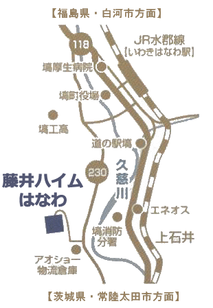 JR水郡線 いわきはなわ駅下車 タクシーで7分。